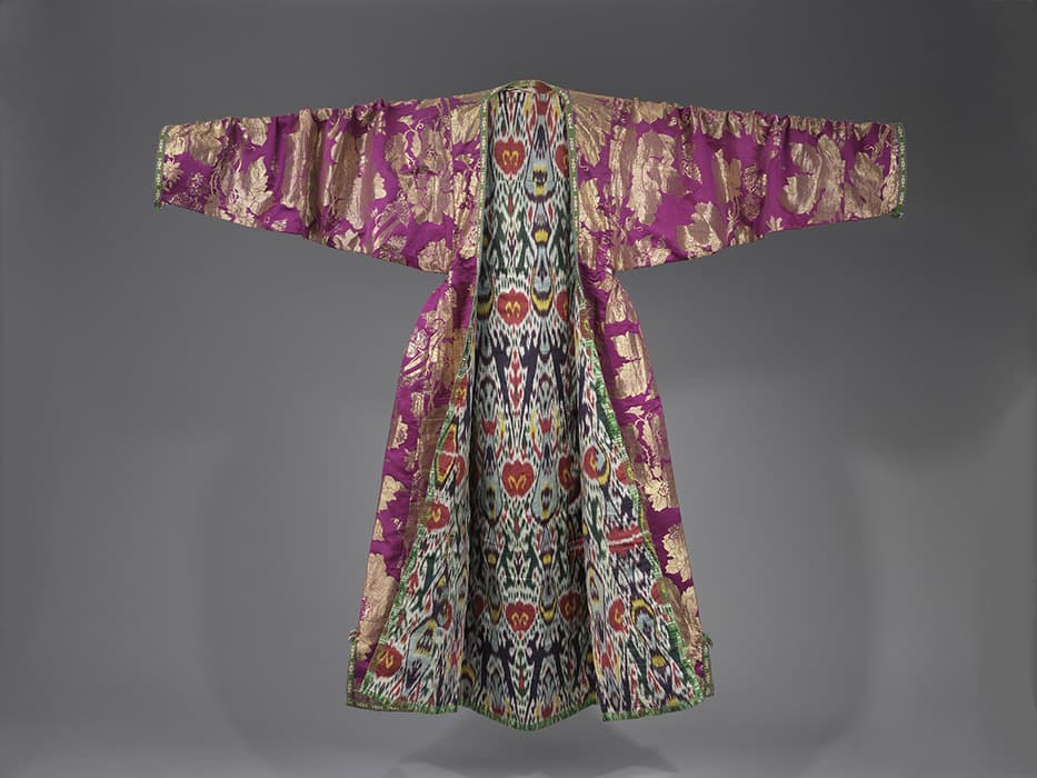 Woman’s coat. Bukhara, Uzbekistan, late 19th century. Brocaded silk, ikat-dyed silk and cotton lining. The Israel Museum, Jerusalem, B64.12.4226. Photo © The Israel Museum, Jerusalem by Mauro Magliani